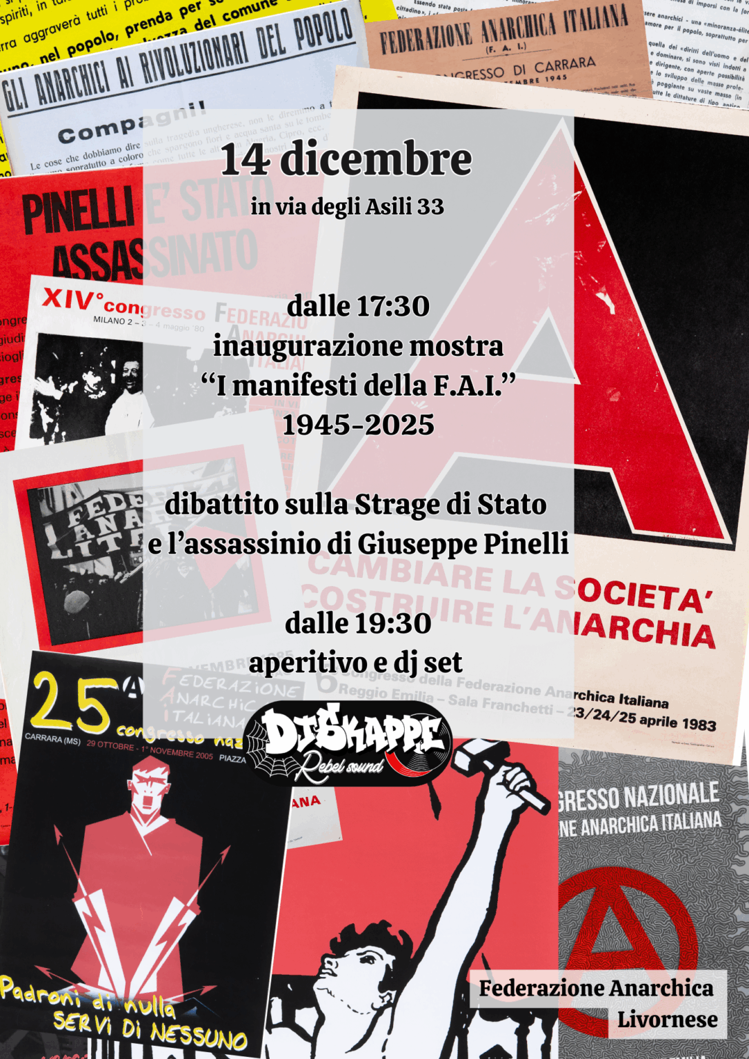LIVORNO: Inaugurazione mostra “I manifesti della FAI”, dibattito sulla Strage di Stato e Dj set