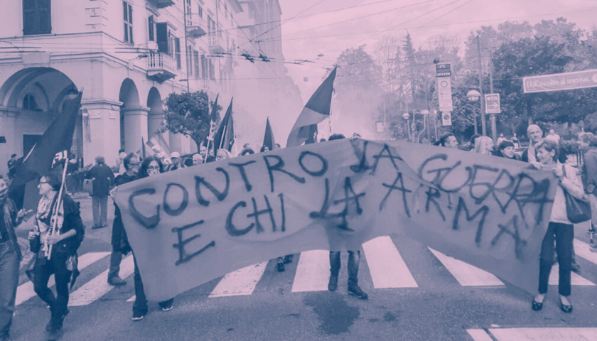 In piazza a La Spezia sabato 27 settembre sono scese in piazza circa 5000 persone per dire no a SeaFuture, fiera bellica del settore marittimo che si è aperta lunedì 29 settembre presso l’Arsenale Marittimo Militare della città ligure. La manifestazione è stata organizzata congiuntamente da Riconvertiamo Seafuture, soggetto che da tempo si oppone alla fiera militarista, e dal Coordinamento Restiamo Umani che aveva convocato a La Spezia la manifestazione del 31 maggio scorso. Una manifestazione plurale, durante la quale sono intervenute al microfono ben 25 realtà diverse, tra cui il Coordinamento Antimilitarista di Carrara, l’Assemblea Antimilitarista torinese, la Federazione Anarchica Livornese, ma anche partiti, e movimenti come No Base e il Presidio permanente “Flotilla di terra” di Livorno, associazioni come Emergency e soggetti locali come Murati Vivi che denuncia la militarizzazione e la chiusura dell’accesso al mare di importanti parti della città a causa delle infrastrutture belliche. Durante la manifestazione ci sono state azioni e momenti comunicativi come la lettura da parte di Non Una di Meno Spezia di un testo sulla Palestina, la ridenominazione di Piazza Chiodo in Piazza Palestina libera, la chiusura simbolica con una rete da cantiere dell’accesso ai portici dell’Ammiragliato, sede del potere militare in città, con su scritto “oggi i murati vivi siete voi”.