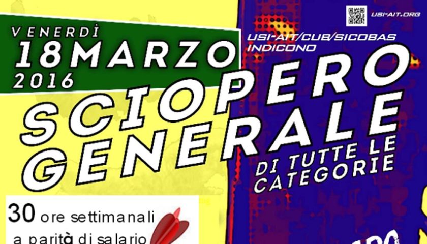 E’ stata data comunicazione dell’avvenuta proclamazione dello Sciopero Generale per l’intera giornata del 18 marzo da parte di CUB, USI-AIT, SI Cobas. Il collante dei tre sindacati che hanno concordato la dichiarazione dello sciopero è stato soprattutto quella del rifiuto a sottoscrivere il famigerato accordo del 10/1/2014 sulla Rappresentanza Sindacale siglato tra Confederali (Cgil, Cisl, Uil) e Confindustria. Purtroppo non possiamo tacere che anche sindacati di base che inizialmente avevano gridato allo scandalo successivamente, con la cosa fra le gambe, sono andati a sottoscriverlo, terrorizzati di perdere quei vantaggi utili alla sopravvivenza delle rispettive strutture sindacali.